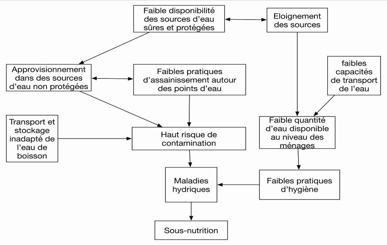 Le département de Mayahi, Région de Maradi au Niger, présentait en 2016 des taux de malnutrition aigues et chroniques supérieurs au seuil critique de l’Organisation Mondiale de la Santé (OMS). Les données exploitées proviennent de la collecte de données issue de l’analyse des causes de la sous nutrition par la méthodologie Link Nutritional Causal Analysis (Link NCA) qui s’est déroulée de décembre 2016 à mai 2017 à Mayahi au Niger. Les indicateurs sur les pratiques d’hygiène, d’assainissement et de la malnutrition de l’enfant ont été recueillis lors d’une enquête de facteurs de risque auprès de 734 ménages. Dans ces 1134 enfants âgés de 0-59 mois et 988 enfants âgés de 6-59 mois ont fait l’objet de mesures anthropométriques. Durant l’enquête qualitative, 16 groupes de discussions ciblés/orientés, 48 entretiens individuels et 4 réunions communautaires ont été organisés. Les résultats obtenus montrent que la faible présence de sources d’eau sûre et protégées d’une part ; et les faibles pratiques d’assainissement autours des puits augmentent le risque de contamination fécale lors de l’approvisionnement en eau de boisson. Cette eau non traitée, associées aux pratiques d’hygiène inadaptées est à la base de diverses maladies infantiles.